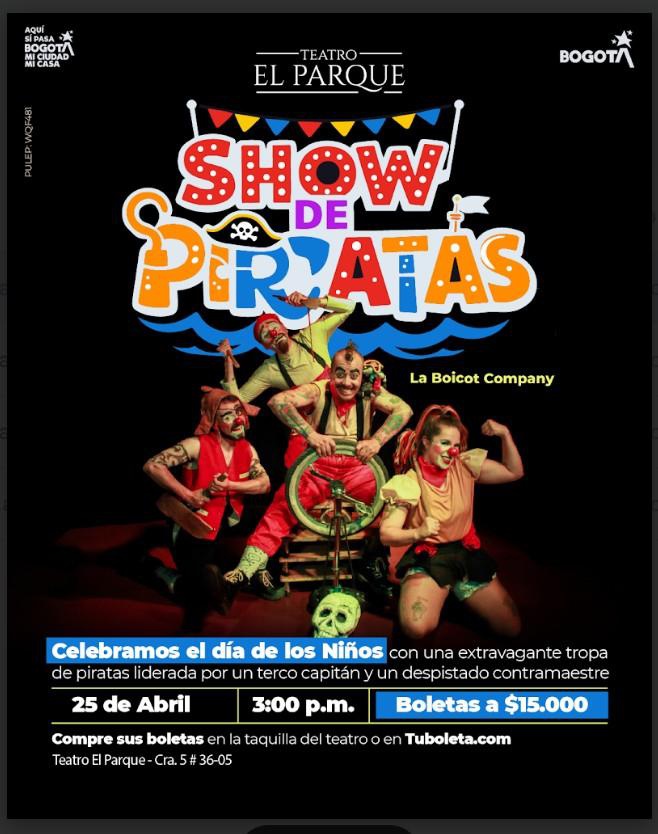 El Teatro El Parque invita a celebrar el Día del Niño el 25 de abril de 2026 a las 3:00 p.m. con una divertida y disparatada aventura pirata para toda la familia. Una extravagante tropa, liderada por un terco capitán y un despistado contramaestre, navega sin rumbo hasta que una feroz tormenta los hace naufragar y los conduce a una misteriosa isla señalada en el mapa. Allí vivirán enredos, traiciones, intentos de motín y hasta una inconclusa historia de amor, mientras enfrentan el mayor desafío: comprender que solo unidos podrán sobrevivir a la criatura que custodia el tesoro. Una comedia llena de acción, humor e imaginación que invita a niñas y niños a celebrar su día entre risas y aventuras inolvidables.