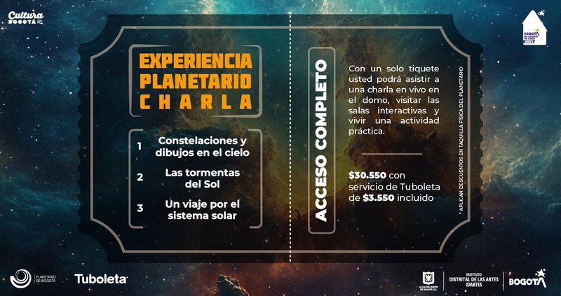 Descripción: La conversación es clave en la divulgación del Planetario, por eso diseñamos una experiencia completa con charlas bajo el domo, un recorrido por salas interactivas y una actividad práctica para toda la familia, con lenguaje accesible. Por ello, diseñamos esta experiencia que combina: recorrido por salas interactivas, proyección charla fulldome y actividad práctica.
